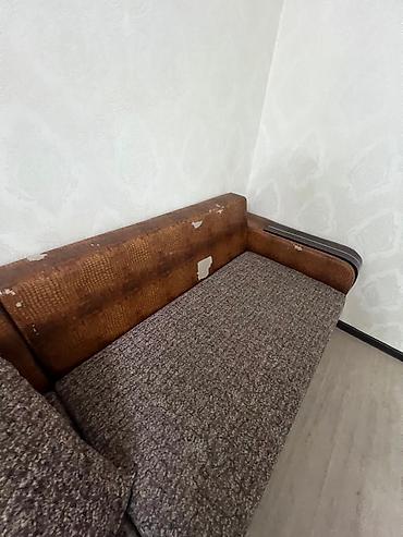 - Обивка: комбинированная. Сиденья и подушки — плотная фактурная ткань серо-коричневого оттенка; корпус и подлокотники — материал под коричневую кожу/экокожу.