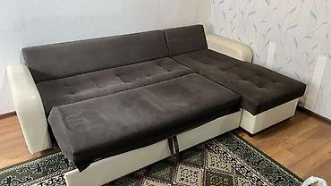 Угловой диван с механизмом трансформации в полноценное спальное место. (+подушки) Особенности: - Конфигурация: правый угол (оттоманка справа на фото), модульная конструкция. - Механизм раскладыван...