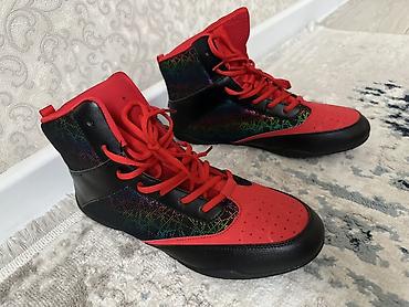 Боксерские кроссовки/борцовки (высокие) - Цвет: черно‑красные с