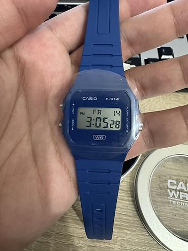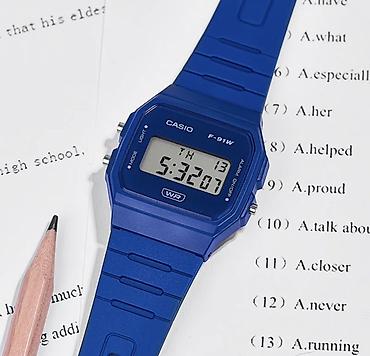 Casio F-91W-B 2А1DF (модуль 593) — культовые электронные часы в синем цвете.