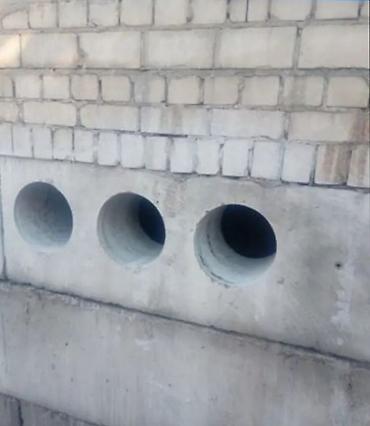 - Выполняем сверление круглых отверстий под вентиляцию, кухонные вытяжки, кондиционеры, дымоходы, сантехнические и электротехнические вводы.