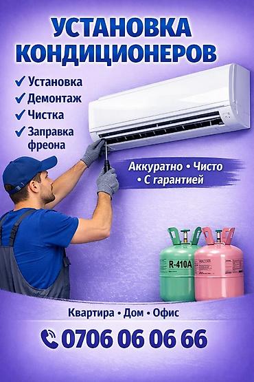 Профессиональные услуги по кондиционерам - Установка кондиционеров - Демонтаж - Чистка - Заправка фреона Особенности работ: - Аккуратно, чисто, с гарантией - Любой сложности - Для квартир, домов ...