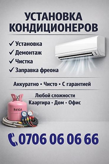 КОНДИЦИОНЕР ОРНОТУУ 🔧 Кондиционер орнотуу 🔧 Монтаж кылуу 🔧 Демонтаж 🔧 Кондиционер тазалоо 🔧 Фреон толтуруу 🔧 Кондиционерди тейлөө Орнотобуз: • 7 (жети) • 9 (тогуз) • 12 (двенашка) • 18 • 24 Жасайбы...