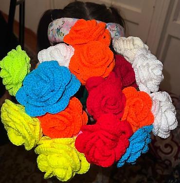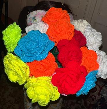 Вязаные крючком розы из гипоаллергенной акриловой пряжи.