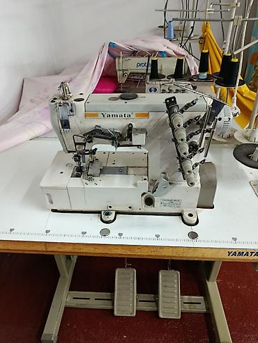- Плоскошовная (coverstitch) машина Yamata на столе с приводом. Два педальных привода, лапка с регулировками, нитеподачи под многониточную строчку, направители для окантовки/подгибки, встроенная линейка на столешнице. Подходит для трикотажа, подгиб низа, пришивание резинки, окантовка.