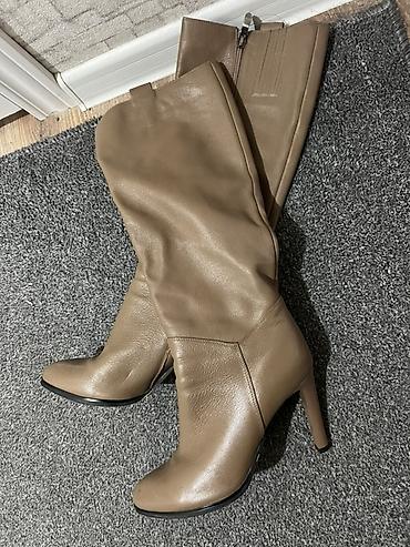 1) Высокие сапоги на каблуке