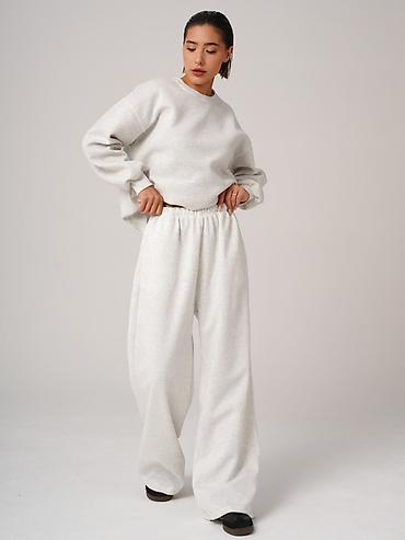 - Ткань: мягкий трикотаж/футер меланж светло‑серого цвета, приятный к телу