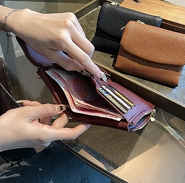 Компактный женский кошелёк с кнопочной застёжкой. Особенности: - Формат: вертикальный, складывается книжкой. - Размер ориентировочно карманный — удобен для мини-сумок и носки в руке. - Материал: н...