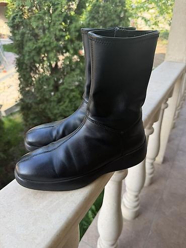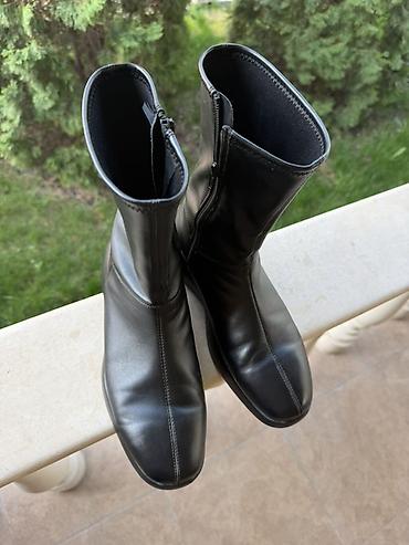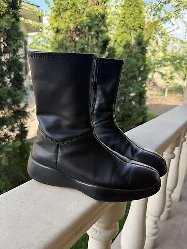 Женские полусапожки черного цвета.Кожа, размер 37 на меху.Продадим срочно за 3000 сом. - Материал верха: черная гладкая экокожа с легкой фактурой. - Силуэт: аккуратный округлый носок, средняя высо...
