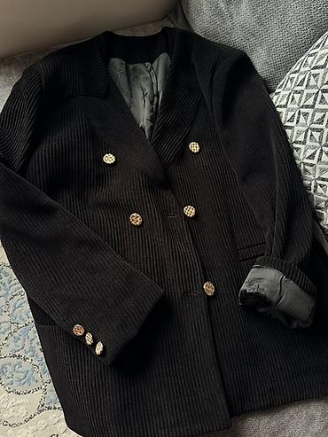 Стильная базовая вещь, которая добавит образу аккуратности и благородного акцента за счет золотистых пуговиц. Размер ориентируйтесь на среднюю посадку в плечах и свободный силуэт.
