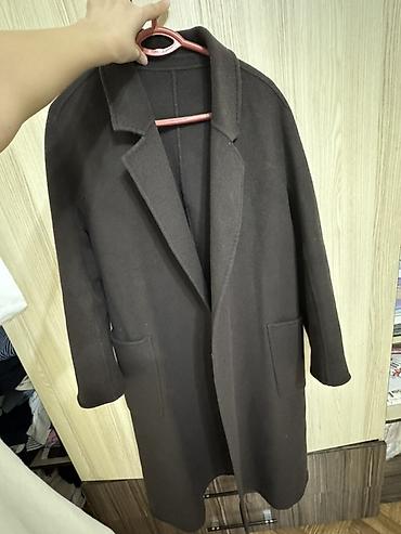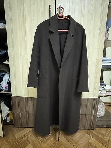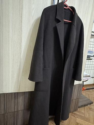 Женское пальто-халат, классическое черное Размер S-M - Крой: прямой, удлиненный силуэт миди - Застежка: двубортная, на пуговицах - Пояс: съемный текстильный пояс для регулировки посадки - Воротник...