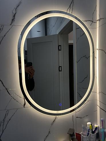 - Конструкция: зеркало с полированной кромкой, скрытый световой контур, тонкий корпус для навесного монтажа; питание от сети.
