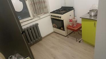 - Кухня с газовой плитой/духовкой, рабочей столешницей и раковиной; радиатор отопления, окно.