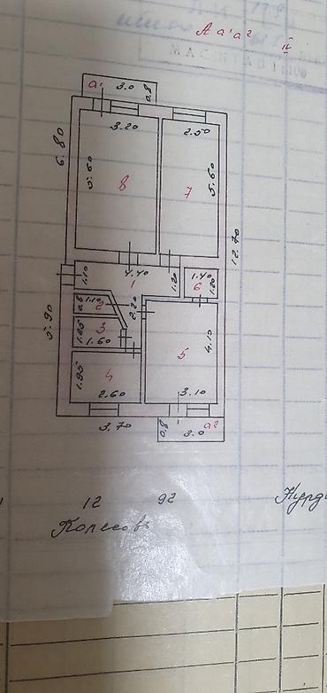 4 комнат квартира сатылат, Джалал-Абад шаары. 114 квадрат метр эки 6 метрлуу ложиясы менен. Эки кладовка. Эски домдордун эн чон квартирасы.