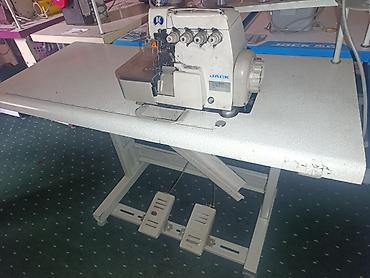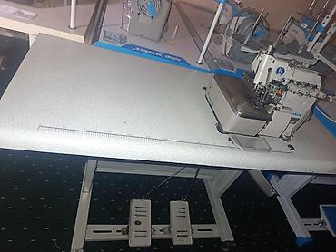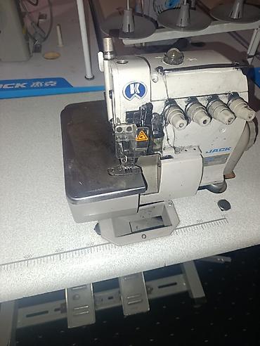 - Комплектация на фото: голова оверлока JACK, промышленный стол со стойкой катушек, педали управления и коленоподъёмник