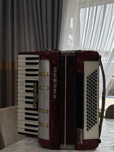 Аккордеон САТЫЛАТ Weltmeister (Германия), красный перламутровый корпус. Характеристики: - Клавиатура правой руки: фортепианная, 41 клавиша. - Левая рука: кнопочная басовая секция, 120 басов. - Рег...