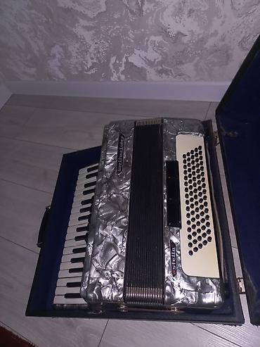 Аккордеон САТЫЛАТ Weltmeister (Германия), красный перламутровый корпус. Характеристики: - Клавиатура правой руки: фортепианная, 41 клавиша. - Левая рука: кнопочная басовая секция, 120 басов. - Рег...