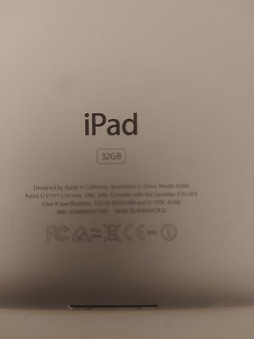 Apple iPad 2, модель A1396, серебристый корпус с чёрной лицевой панелью. На задней крышке маркировка 32GB.