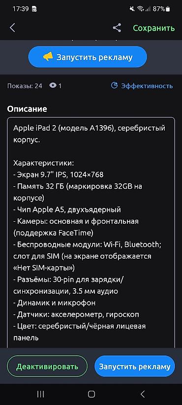 Планшет, Apple, память 32 ГБ, 9" - 10", Wi-Fi, Классический цвет - Серебристый