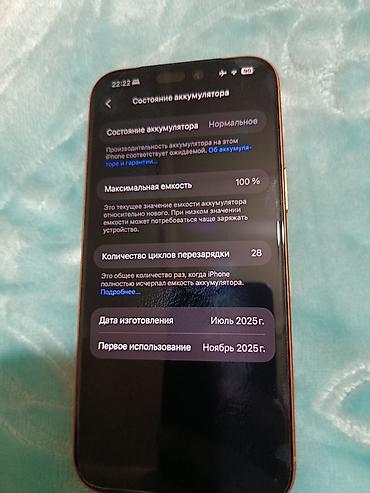 Продаю iPhone 16 Pro Max в цвете Gold, память 256 GB. Телефон оригинальный, использовался ровно 1 год и 1 месяц, исключительно бережно. Состояние: Аккумулятор 94% Не ронялся, без ремонтов Носился ...