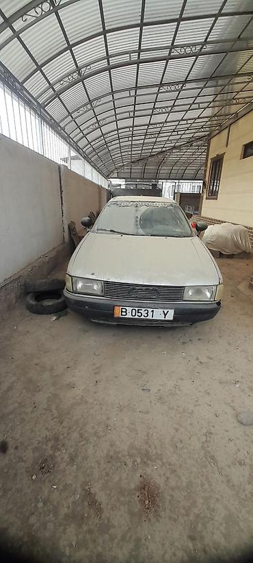 Audi 100 C4, седан, левый руль. Белый цвет кузова, черные бамперы. Фары прямоугольные, решетка с эмблемой Audi. Легкосплавные диски спереди, штампованные сзади. Задний спойлер на крышке багажника, двойной выхлоп. Лобовое стекло с наклейкой Audi. Номерные знаки B 0531 Y (с оранжевым кружком слева).