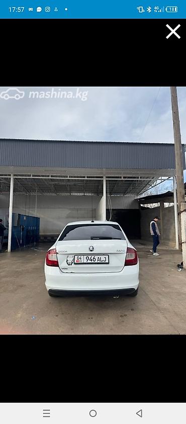 Skoda Rapid, белый седан - Кузов: 4-дверный седан, белый цвет - Номер региона: KG 01 - Экстерьер: фирменная решетка радиатора Skoda, линзовые фары, задние фонари с классической С-оптикой, антенна ...