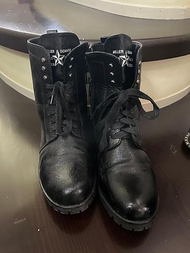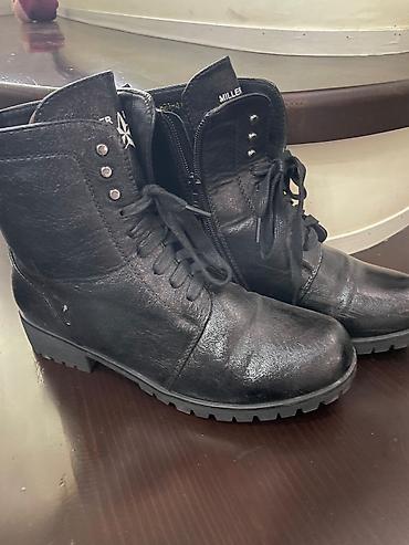 Черные кожаные ботинки Miller (надпись на язычке), стиль милитари/гранж.состояние нового одела несколько раз оказалось малы размер маломерит ,разгружаю гардероб продаю даром в профиле много всего