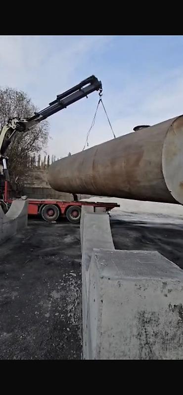 Горизонтальная стальная цистерна большого объема 50м³.ёмкость находится в Оше. Описание: - Материал: толстостенная сталь, цилиндрический резервуар с плоскими днищами. - Конструкция: горизонтальная...