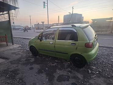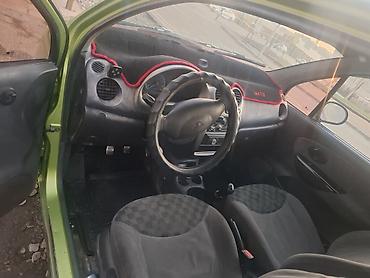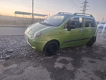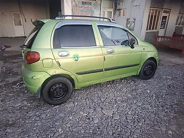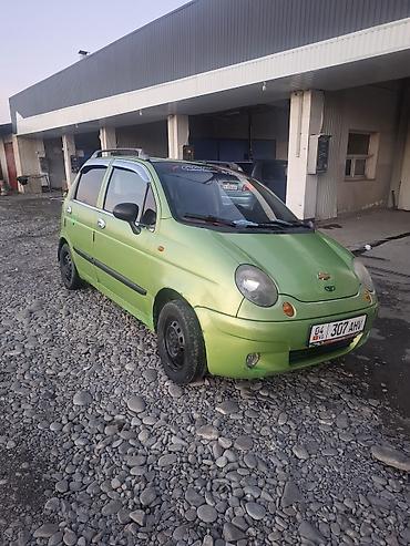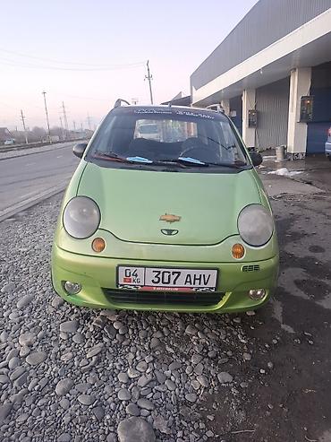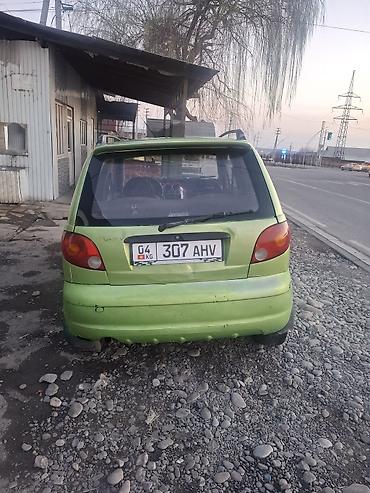 Daewoo Matiz, хэтчбек 5‑дверный, зеленый цвет. Компактный городской автомобиль с экономичным бензиновым двигателем и передним приводом. Модель с круглыми передними фарами, тонированными стеклами и рейлингами на крыше. В салоне — 5 мест, передние стеклоподъемники, центральная консоль с органайзером, руль с чехлом. По кузову установлены боковые молдинги, защитные накладки на бамперах, хром‑накладки на ручках дверей и ветровики. Колеса — штампованные стальные диски. Машина маневренная и удобная для города и повседневных поездок. Номер: 307 AHV (KG).