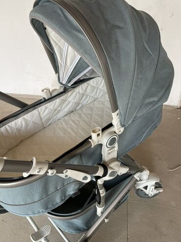 Универсальная детская коляска 2-в-1 (люлька + прогулочный блок), цвет хаки/оливковый. Основные особенности: - Шасси из легкого металла с лаконичным дизайном, центральный замок фиксации блока. - Бо...