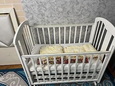 - В комплекте на фото: матрас стандартного размера для кроватки и мягкие бортики/защитные подушки.
