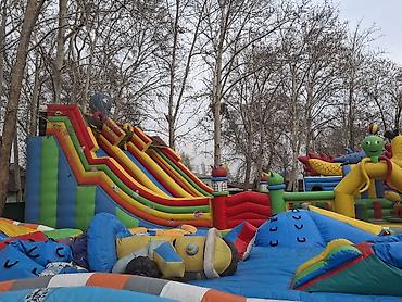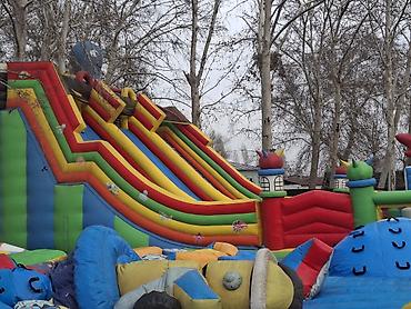 - Несколько горок различной высоты, надувные препятствия, фигурки-животные и кольцевые пролазы.