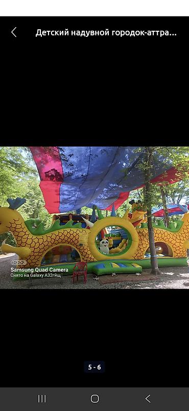 - Яркий многоуровневый надувной комплекс в тематике дракона и морских обитателей.