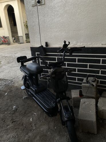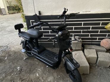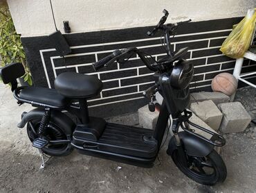 Электроскутер городского типа, компактный и бесшумный. Черный матовый