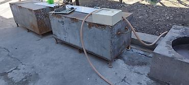 - Три металлические ванны прямоугольной формы на опорах, с боковыми ручками для переноса.