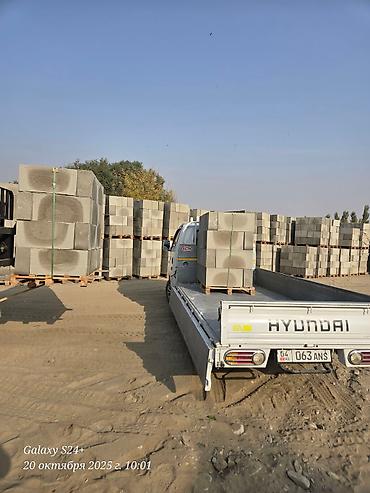 Газоблок ош шары Бетонные блоки стандартного размера, аккуратно уложенные на поддоны для удобства транспортировки и хранения. Эти блоки идеально подходят для строительства фундаментов, стен, огра...