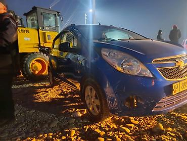 Chevrolet Spark (узнаваемый городской хэтчбек) в ярком синем цвете.