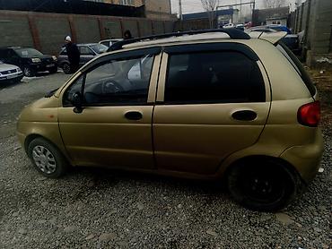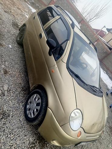 Срочно сатылат технический абалы жакшы, мелоч иштери бар, машина на ходу, оформление сразу Daewoo Matiz, пятидверный хэтчбек, золотистый цвет кузова. Компактный городской автомобиль с экономичным бензиновым двигателем и механической коробкой передач. Передний привод.