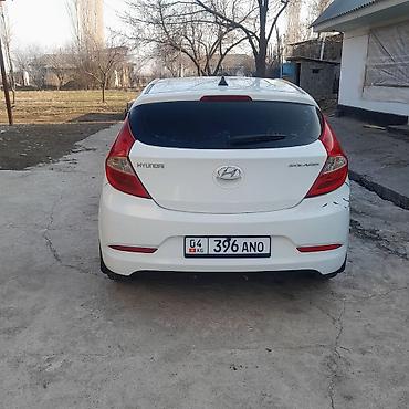 - Цвет кузова белый, задние фонари красные, фирменные эмблемы Hyundai и Solaris на крышке багажника