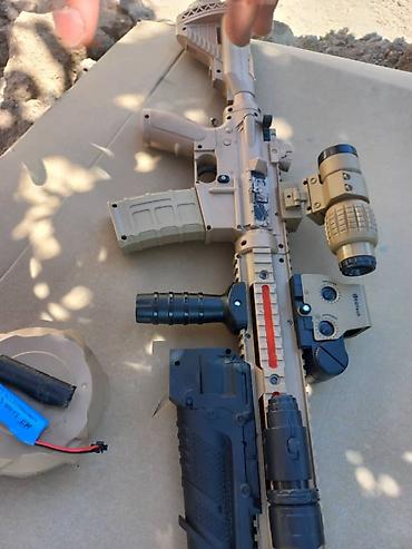 Эта детализированная игрушечная бластерная винтовка выполнена в бежевом и черном цветах. Оснащена съемными элементами, такими как прицел, магазин, фонарик и цевье с планками для крепления аксессуаров. Комплект включает аккумуляторную батарею с разъемом. Идеально подходит для ролевых игр, активного отдыха и может стать отличным дополнением к коллекции игрушечного оружия. Обеспечивает реалистичный игровой процесс.