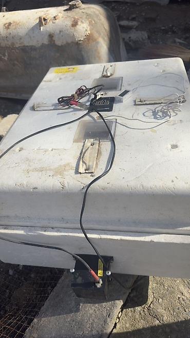 - Питание от внешнего источника постоянного тока; на фото — подключённый блок/аккумулятор через клеммы.