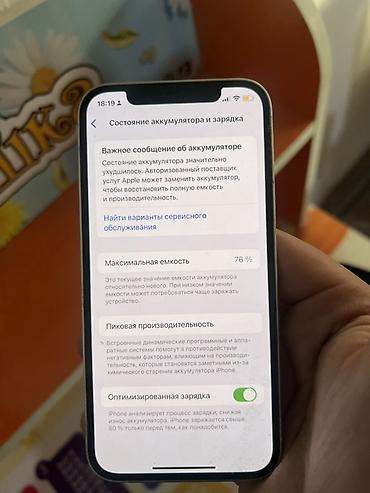 - Аккумулятор: максимальная ёмкость 76% (в настройках отображается сообщение о необходимости обслуживания)