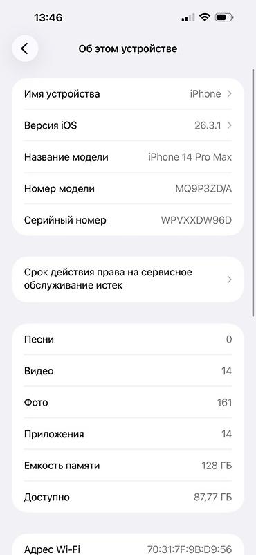 - Модель: iPhone 14 Pro Max (номер модели MQ9P3ZD/A)