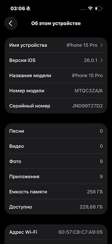 - Модель: iPhone 15 Pro (номер модели MTQC3ZA/A)