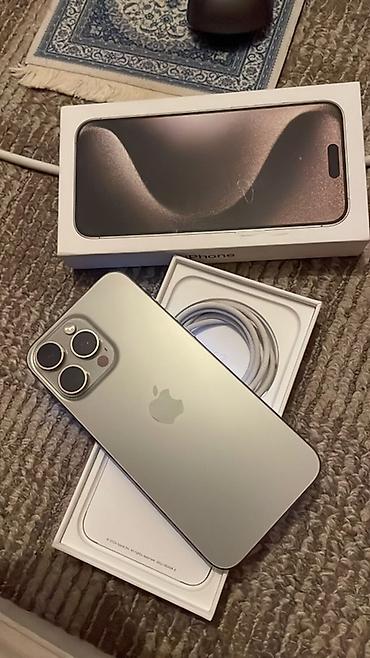 IPhone 15 Pro Max, цвет Natural Titanium (натуральный титановый). В комплекте: фирменная коробка, кабель USB‑C.