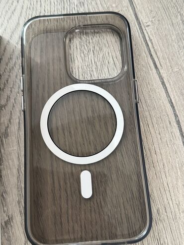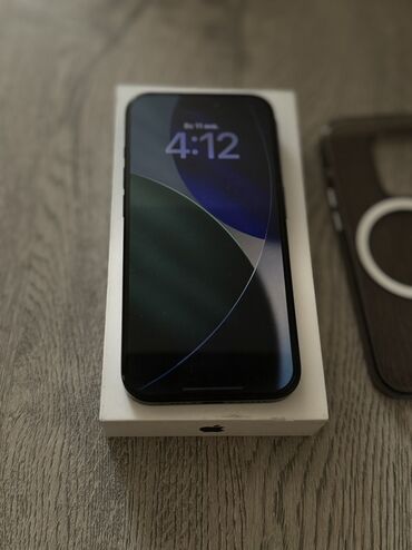 - В комплекте коробка Apple; на фото видно сам смартфон и прозрачный чехол с MagSafe.