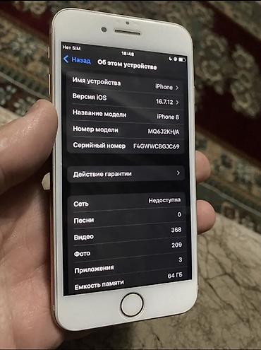 IPhone 8, серебристый - Модель: iPhone 8 (номер модели MQ792J/A) - Память: 64гб - iOS: 16.6 - Аккумулятор: максимальная ёмкость 100%, поддерживает нормальную пиковую производительность, включена о...