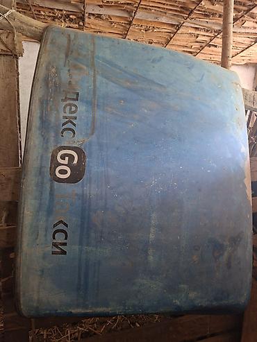 Капот автомобиля с голубой окраской и вертикальной надписью «Яндекс Go Такси» сбоку. Материал — металл, наружная поверхность окрашена, снаружи имеются следы эксплуатации и налета. Геометрия капота близка к прямоугольной с плавными радиусами по краям; внутренние ребра жесткости не показаны на фото. Подойдет как недорогая замена, основа под перекраску или для проекта/декора (гараж, мастерская, тематическое оформление). Размер — стандартный легковой капот; крепежные проушины и отверстия под петли и упоры — штатного типа (визуально соответствуют типовым решениям легковых авто). Наклейки/брендинг «Яндекс Go Такси» сохранены.