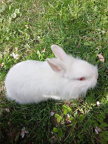 Мини‑кролик декоративной породы с длинной пушистой шерстью (тип «львиноголовый»). В комплекте отдам клетку, сено, немого наполнителя….Цвет — белый с серо‑кремовыми отметинами на мордочке и ушках. ...