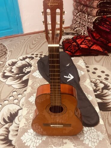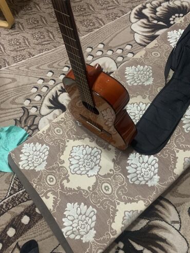 Акустическая гитара с чехлом + укулеле укулеле-500 сом.Гитара с чехлом и с ремешком 2500тыс. Акустическая гитара (классическая, нейлоновые струны), корпус оттенка sunburst. Видны 6 колков открыто...
